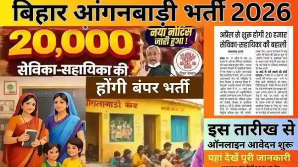 Bihar Anganbadi Bharti 2026: बिहार में आंगनबाड़ी सेविका एवं सहायिका की 20,000 पदों पर बंपर भर्ती, देखें योग्यता,आयु, चयन प्रक्रिया,अंतिम तिथि