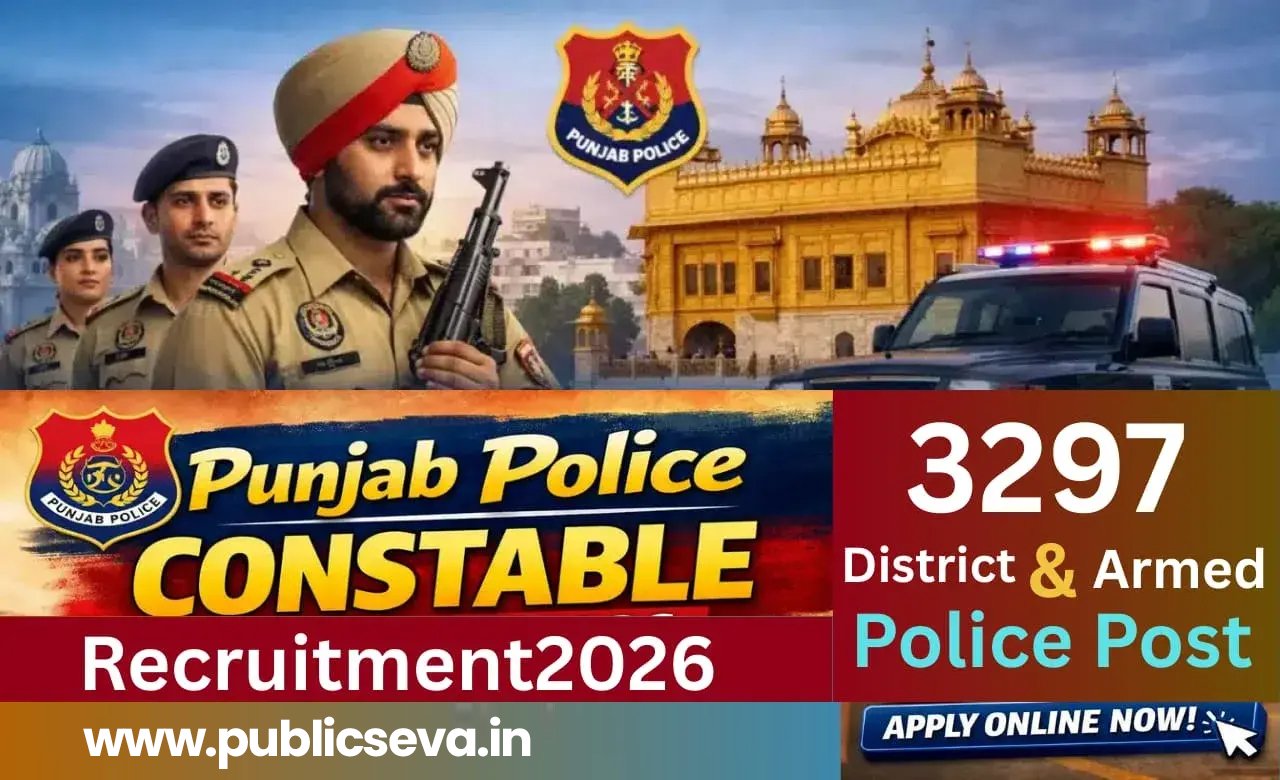 Punjab Police Constable Recruitment 2026: हैलो दोस्तों अगर आपने 12वीं पास की है और पंजाब के रहने वाले हैं और पुलिस विभाग में एक शानदार सरकारी नौकरी की तलाश कर रहे हैं तो आपके लिए एक बेहतरीन अपडेट सामने आई है। जी हां दरअसल 6 मार्च 2026 को पंजाब पुलिस विभाग की तरफ से आधिकारिक नोटिफिकेशन जारी किया गया है जिसमें पुलिस कांस्टेबल की 3297 पदों पर वैकेंसी निकली गई हैं।